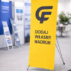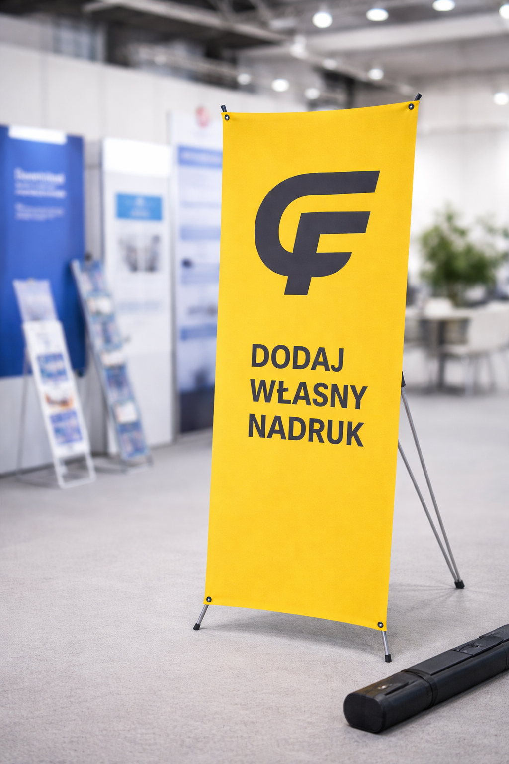 Grafika drukowana jest na banerze powlekanym, który cechuje się wysoką trwałością oraz intensywnym odwzorowaniem kolorów. Druk ecosolventowy premium zapewnia estetyczny wygląd i odporność na częste użytkowanie. Mocowanie banera odbywa się w górnej i dolnej listwie, co zapewnia równomierne napięcie grafiki.